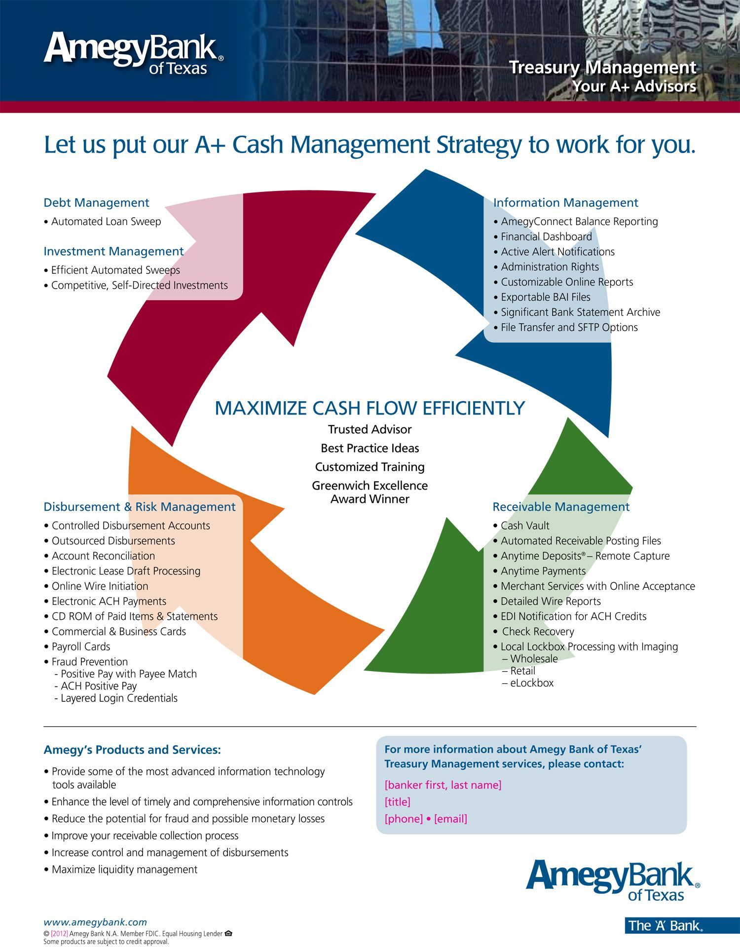 When we were contracted to provide marketing and communication materials for Amegy Bank, the corporation had a new brand and comprehensive branding guidelines. My role was to deliver targeted, consistent messaging that adhered strictly to these guidelines, while also engaging with and connecting the bank’s audience, both internal and external.